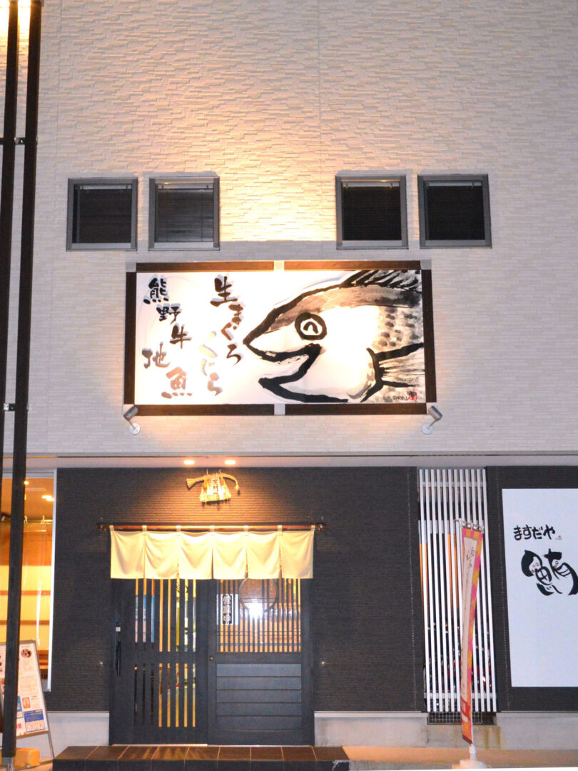 港直送の新鮮マグロを繊細な創作料理で味わえる和食居酒屋。JR紀伊勝浦駅前にあり、カップルや女性客にも人気の店だ。夜はお洒落に酒と料理を楽しめる居酒屋に。
