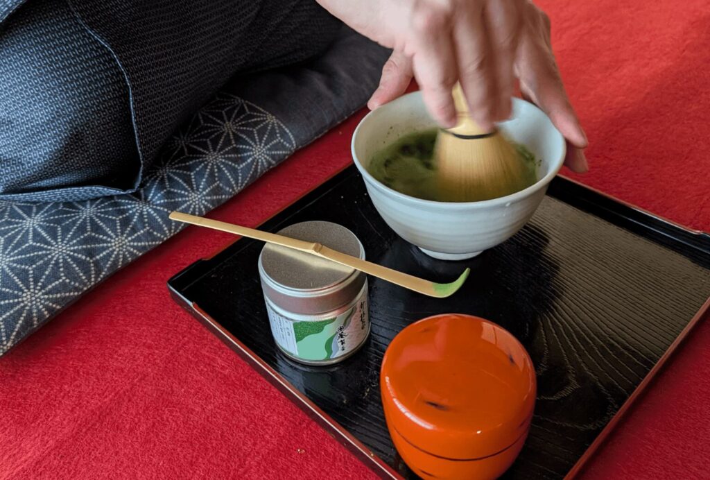 旅は、由緒ある家系に伝わる歴史的な茶室から始まります。免許を持つ茶道家が、格式ある茶道の作法を披露し、その後はご自身でも抹茶を点てる体験へ。心を落ち着かせ、一碗を丁寧に点てる時間は、抹茶文化の本質に触れる瞬間となるでしょう。