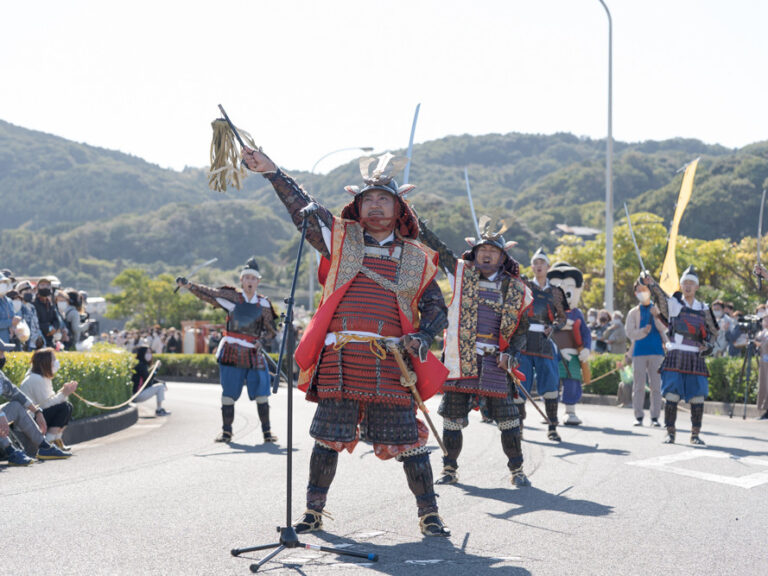 第22回松浦水軍まつり 多彩なステージイベント、物産展はもちろん、松浦党が活躍した時代を再現した武者行列も行われる。まるで松浦市の歴史絵巻を見るような、松浦市最大級のイベント。 画像提供:まつり実行委員会