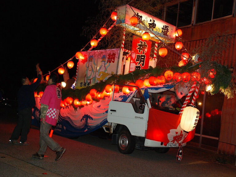 たいまつ祭り 2日(土)22時頃からゑびす様、大黒様を乗せた屋形船と神輿が町内を練り歩く。クライマックスは、0時頃神社参道を焦がす300本の松明の中を42歳の厄年の男衆が神輿を担いで駆け抜ける勇壮な祭り(新治神社例大祭)。とやまの祭り百選に選定されている。また、2016年1月に黒部市無形民俗文化財に指定された。黒部市コミュニティーセンター駐車場からは徒歩5分。
