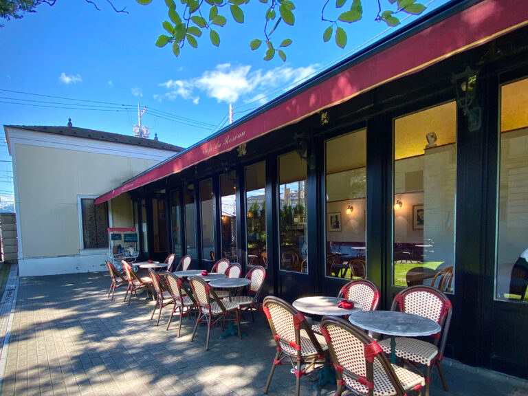 窓の外には、日本シャンソン館の瀟洒な洋館と庭園が広がり、まるでフランスの街角にいるような気分に。パリのエスプリを感じる店内では、クロワッサンのほか焼きたてのパンの数々や、「バラ色の人生」などシャンソンの曲名の付いたハーブティーが味わえる。また、ランチタイムにはじっくり柔らかくなるまで煮込んだ「牛ほほ肉の赤ワイン煮」など厳選した料理や、季節限定のメニューを楽しめる。