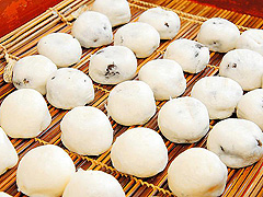 明治創業の老舗和菓子店。門司名物として人気のめかり饅頭1個46円は源平合戦の紅白の旗を黒の粒餡と白のこし餡でかたどったひと口サイズの蒸し饅頭。100年以上作り続けている伝統の味をぜひ。
