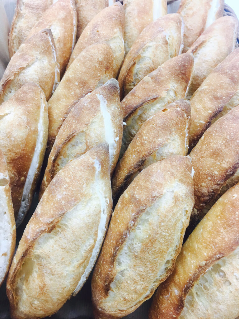福岡のブーランジェリーを代表する大西かおりシェフ直伝のパンは、小麦粉本来の味わいがあり、飽きのこないおいしさ。人気のバゲットのほか、菓子パンやデニッシュ系など全部で60~80種類とバラエティ豊富なのも魅力。