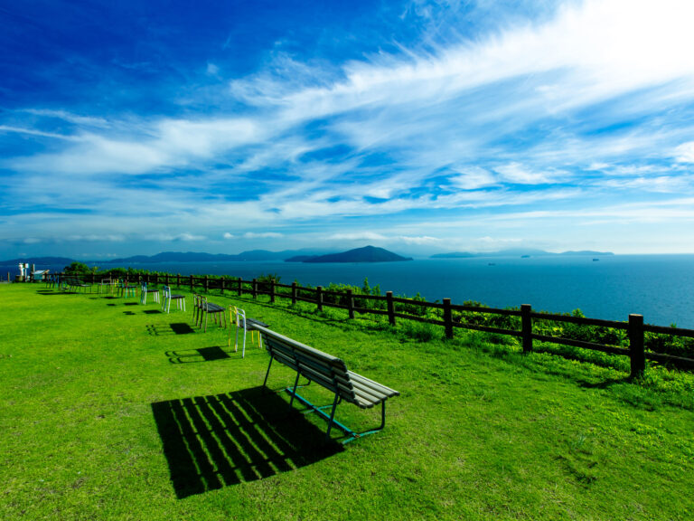 大串半島に広がるレジャーゾーン。ワインを試飲できるさぬきワイナリー、オートキャンプ場などが揃う。また野外音楽広場テアトロンでは、毎年コンサートが行われている。