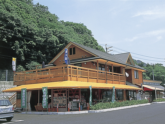 食堂、農産物直売所、売店などを備えた道の駅。川面に落ちる夕日が非常に美しい。