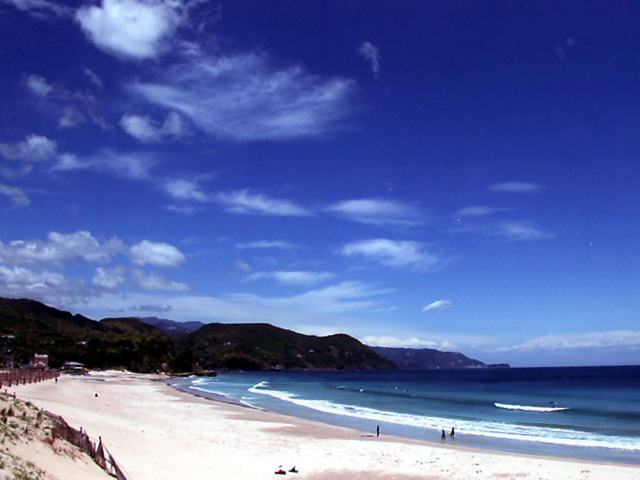 Spot白浜海岸エメラルドグリーンの水と白砂の美しさで知られる白浜海岸は、伊豆随一のビーチリゾート。北に長さ720mの白浜中央、南に770mの白浜大浜という2つの海水浴場が続く。大浜は年間を通して多くのサーファーが訪れ、夏は美しいビーチを求めて多くの海水浴客で賑わう。Alibaba2025/05/26