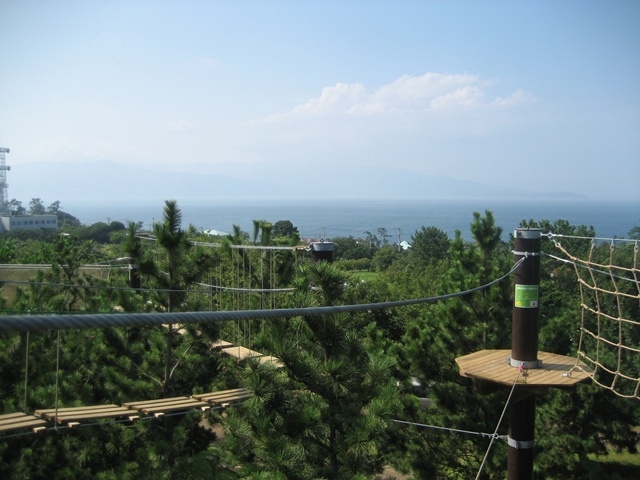 Spot初島アドベンチャー「SARUTOBI」専用のハーネスを着装し、高さ6mの木々の上を渡って楽しむヨーロッパで人気のアスレチック。落ちる心配は無用なので、初心者でもスリル満点のドキドキ体験が楽しめる。Alibaba2025/05/26