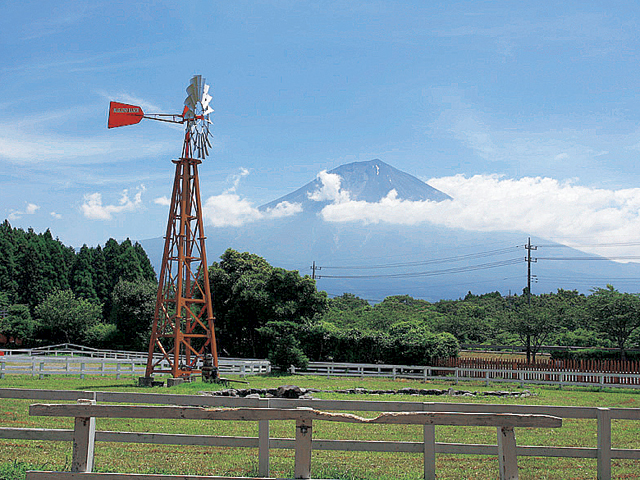 富士山を望む広大な観光牧場。動物ふれあいエリアでは、乗馬500円~や人気の牛の乳しぼり体験(無料)ができる。アスレチックのほか、バター作りやクラフト・陶芸などに挑戦可。自然を満喫できる憩いのエリアでは、ハンモックの森でお昼寝も。農場レストラン、バーベキューハウス、牧場特産品コーナーあり。