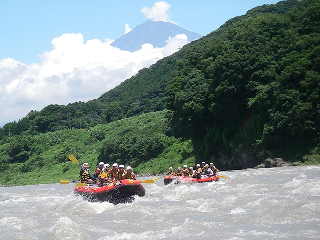 1998年(平成10)から富士山南麓をベースに、富士川ラフティング、富士山朝霧マウンテンバイクなどのアウトドアツアーを企画運営している「ナチュラルアクションアウトドアツアーズ」。日本三大急流の一つ「富士川」のスリリングなラフティングでは、美しい自然の中で、水しぶきを浴びながら激流を乗り越える体験ができる。このほかリバーSUPツアーも開催しており、初心者から楽しめる。家族で楽しめるキッズラフティングもおすすめ、身長100cm以上の子供から参加可(1名6500円)。