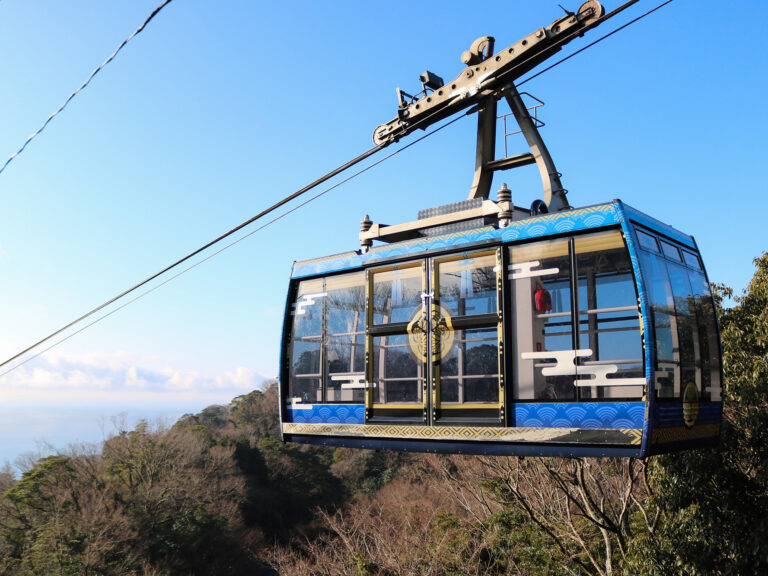 Spot日本平ロープウェイ日本平と標高270mの久能山までを結ぶ、全長1065mのロープウェイ。眼下には切り立った絶壁が連なる屏風谷[びょうぶだに]や、遠くには駿河湾の景色が広がる。同乗するガイドが周辺の歴史、地理などを解説してくれる。通常の運行間隔は10~15分程度。Alibaba2025/05/26