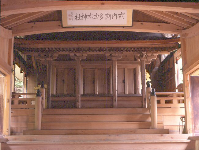 Spot阿多由太神社荒城[あらき]神社などとともに飛騨国式内八社に数えられる古社。柿[こけら]葺きの三間社流見世棚造[さんけんしゃながれみせだなづくり]の本殿(重要文化財、日本遺産構成文化財)は、室町初期の代表的建造物。構造は簡素だが、柱上で軒を支える「ときょう」などに室町時代の特色を表し、素朴さと優雅さを合わせ持っている。通常は覆殿[おおいでん]の中にあり、拝観することはできない(要予約)。Alibaba2025/05/26