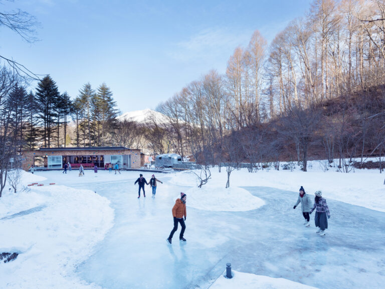沢の水が凍ってできた屋外のスケートリンク。軽井沢の冬の気候と、野鳥の森から流れ出る沢の水でできたリンクは、まさに自然の恵みによって創り出されたもの。木々の向こうに浅間山が顔を出し、耳をすませば小鳥の声が聞こえてくる。森の自然につつまれる心地よさを感じることができるスケートリンクだ。期間は11月上旬~3月中旬まで。
