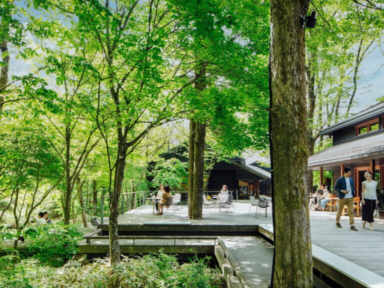 清流に寄り添うように連なる9棟の建物に、16の個性的な店舗が集う「小さな街」。街全体が周囲の自然と共生するように設計され、木々を渡る風を感じ、川のせせらぎを聞きながら、くつろげるスペースを広く設けている。軽井沢暮らしをより豊かにする、オーナーこだわりの商品を揃えたショップと、イタリアンや中華・蕎麦などさまざまなジャンルのレストランやゆったり過ごせるカフェがある。令和5年(2023)には、手作り指輪工房「CRAFY・glanta」がオープン。指輪作りの体験を通して、軽井沢という場所や制作する時間が思い出となるような「豊かな時間」を提供している。
