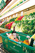 軽井沢マダムやプロの料理人も通うスーパーツルヤ。県内に33店舗あり、ツルヤブランドの商品が100種類以上揃う。約400平方mの広さを誇る生鮮売り場には、産地直送の新鮮な野菜がずらりと並ぶ。