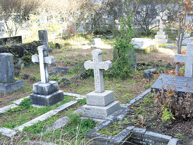 六本辻近くの軽井沢霊園の一角にある外人墓地。ここには宣教師をはじめ、軽井沢で没した外国人が静かに眠る。石や木の十字架が立ち並ぶ様子は異国情緒あふれ、たくさんの外国人に愛された軽井沢の歴史がしのばれる。