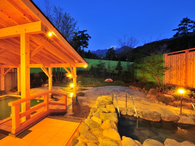 四方を山に囲まれた豊科の田沢地区にある公共温泉。ナトリウム-炭酸水素塩泉のまろやかな湯で、神経痛や筋肉痛によく効くと地元でも親しまれている。四季折々の豊かな自然を見ながら浸かれる露天風呂や大広間でゆったりとくつろぐことができる。