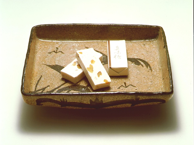 中庭の通路からガラス越しにお菓子の製造工程が見学できるハセップ対応の工場とショップ・カフェの複合施設。カフェは晴れた日には常念岳を望む絶好のロケーション。毎週火曜の10時~はできたてのどら焼きも味わえる。みやげには代表銘菓開運老松や真味糖、白鳥の湖がおすすめ。