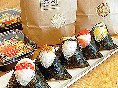 注文を受けてから作るおにぎりの専門店。店長の実家で収穫したコシヒカリを使用している。具は日替わりのものを含め約40種類もあり、チョイスも楽しみ。1個108~270円。