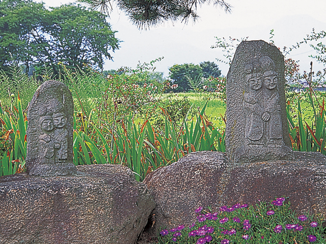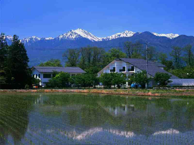 ロダンの彫刻に強い影響を受け、躍動感あふれる作風により日本近代彫刻の扉を開いた荻原守衛[もりえ](碌山)の、『女』『文覚』など全彫刻作品や絵画を収蔵する美術館。交友のあった高村光太郎、戸張孤雁[とはりこがん]、中原悌二郎[ていじろう]の作品も展示。キリスト教精神に生き、30歳で夭折した碌山を偲び、昭和33年(1958)に建設された本館は教会風のレンガ造り。庭の木立とあわせ、安曇野の象徴的風景として知られる。所要40分。碌山館(本館)は登録有形文化財。『女』『北條虎吉像』は重要文化財。