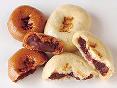 右から温泉まんぢう1個65円と一茶まんぢう1個45円。弾力のある皮とほどよい甘さの餡のバランスがいい。