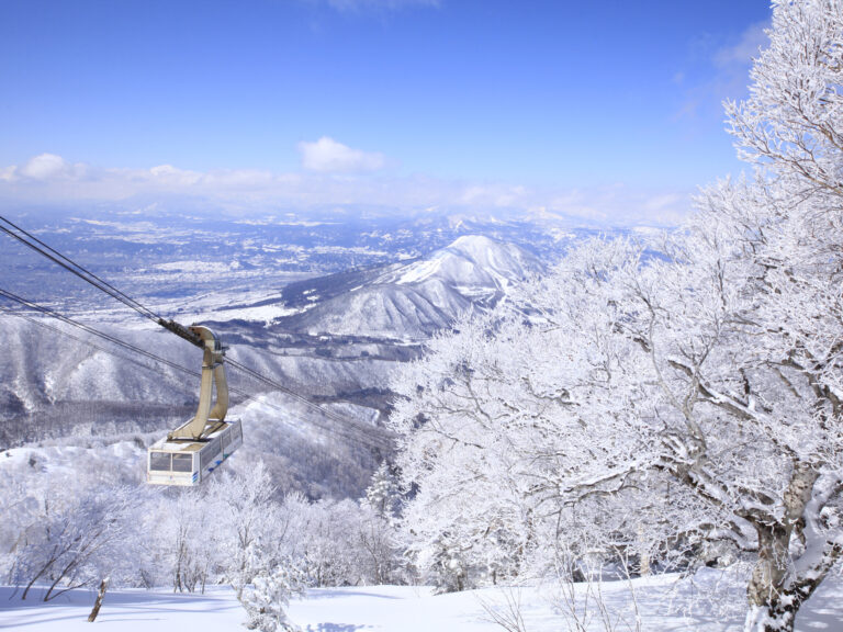 竜王スキーパークは標高1930mで、雪質・雪量ともに満足度が高い。名物の木落しコースは国内屈指の非圧雪バーンで、極上のパウダースノーを楽しめる。ゲレンデ上部のスカイランドエリアはパウダー好きにはたまらない。メインゲレンデのバレーエリアはフラット&ワイドバーン。他にも、雪上車に乗ってロープウェイを使い「SORA terrace」や「SORA terrace cafe」まで行き、冬ならではの絶景が楽しめる。「SORA terrace観光プラン」や、大人も子どももそりやチュービング等を楽しめる「アドベンチャーパーク」などもあり、スキー・スノーボード以外のコンテンツも充実している。
