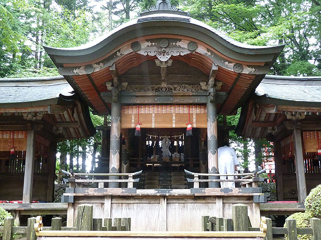 乙事諏訪神社の社殿は、諏訪大社上社本宮の弊拝殿を移築したもので、本殿を設けず磐座を神の憑代とする諏訪神社造りともいわれる特有の形式・配置をよく伝えていることと、構造手法及び彫刻・錺金具などに中世末期を示す特質が認められ、昭和5年(1930)に国宝に指定された。現在は、昭和23年(1948)の火災による復元修復と文化財保護法の制定により重要文化財に指定された。