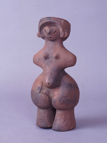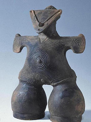 茅野市米沢地区の棚畑遺跡から発掘された土偶。「縄文のビーナス」と呼ばれ、妊娠した女性をかたどっている。全高27cm。細部にわたり縄文時代の見事な造型技術が見られる。茅野市尖石縄文考古館で見ることができる。