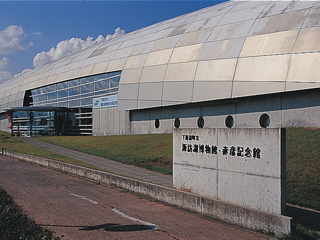 下諏訪町立諏訪湖博物館・赤彦記念館では、諏訪湖と共に暮らしてきた人々の生活の様子と周辺の遺跡から出土した土器・石器などを紹介する諏訪湖展示室、諏訪を代表するアララギ派の歌人・島木赤彦の生涯とその業績を紹介する赤彦展示室の2つの常設展示を行っている。また、当館の諏訪湖の「水平虹」と「まるた舟」をイメージした建物は、下諏訪町ゆかりの世界的建築家伊東豊雄氏の設計によるもの。