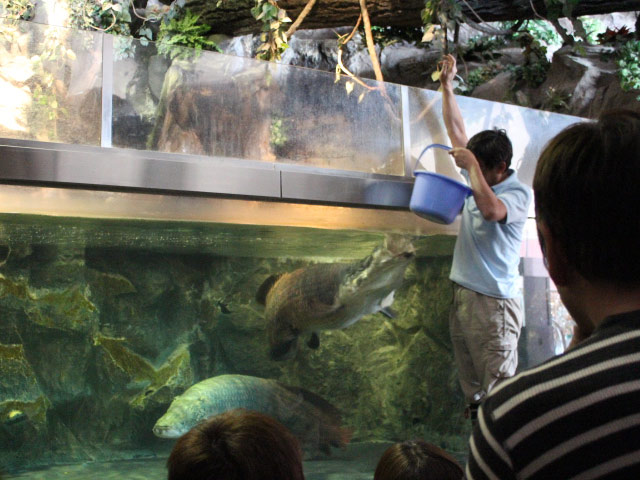 標高1750mの地点にある、日本最高地の水族館。館内は王宮やジャングルを模しており、水槽には古代魚ピラルクやアロワナが悠々と泳いでいる。そのほかエサやりコーナーではコイやカメとの触れ合いも体験できる。「飼育員による餌付けと解説」では、ピラルクの捕食シーンが見られ、迫力満点。