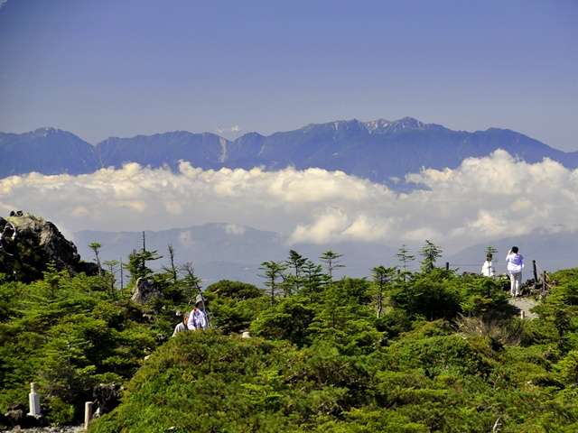 横岳と縞枯山の鞍部、標高2240mの地点に広がる溶岩台地。標高が高いため自然環境が厳しく、低木が岩地を這うように枝を伸ばしている。散策路は1周約40分。周辺には約30種類以上の高山植物が自生し、6~7月にはコイワカガミ、コケモモなどが可憐な花を咲かせる。気温が低く天気も変わりやすいので、上着を持参するなど防寒対策を。