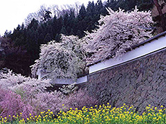 石仏で知られる霊諍山を背に、禅宗の古刹大雲寺の一帯に桜が咲く。古城を思わせる佇まいに咲く桜は一見の価値あり。また、「長野の自然100選」にも選ばれている。