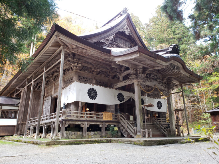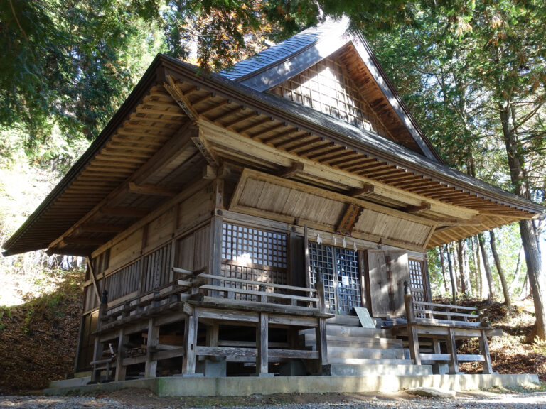 戸隠神社にあり、祭神は中社の祭神の御子、天表春命[あめのうわはるのみこと]。技芸、安産、厄除けなどに御利益があるという。200段余りの石段を登ると、荘厳な社殿が姿を現す。建立は康平元年(1058)とされ、拝殿の柱や棟木に施された龍などの彫刻は必見。