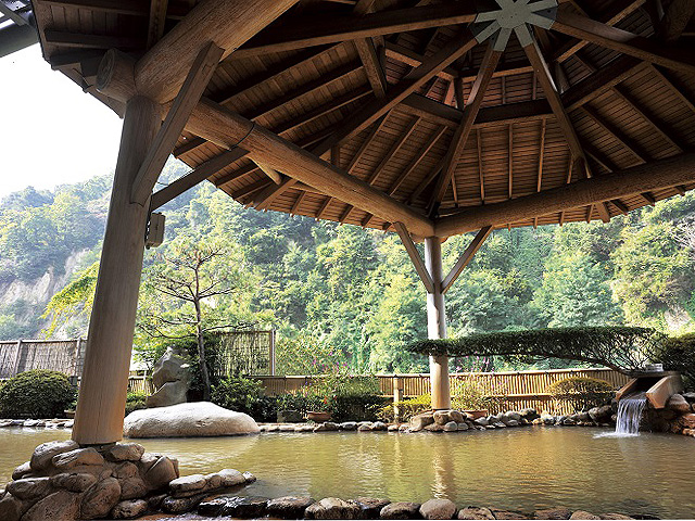 TVで紹介されたこともある、ユニークなお見合い露天風呂で有名な温泉宿で、日帰り入浴も受け付けている。男女別の露天風呂の境にお見合い神社が設けてあり、女性側のみにある紐を引っ張ると、仕切りが開いて向こう側にいる男性と会話ができる。ゴールインしたカップルも3組誕生したという、ご縁に恵まれそうな温泉は、美肌効果もあって湯あがりはすべすべの肌に。