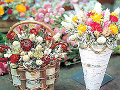 店内はオーナーが自家栽培して自然乾燥させた色鮮やかなドライフラワーであふれ、小物などを中心に手作り商品を販売。また、店内のドライフラワーを使ったアレンジメント体験もでき、30分でリース1080円~(材料費込み)などを作ることができる。