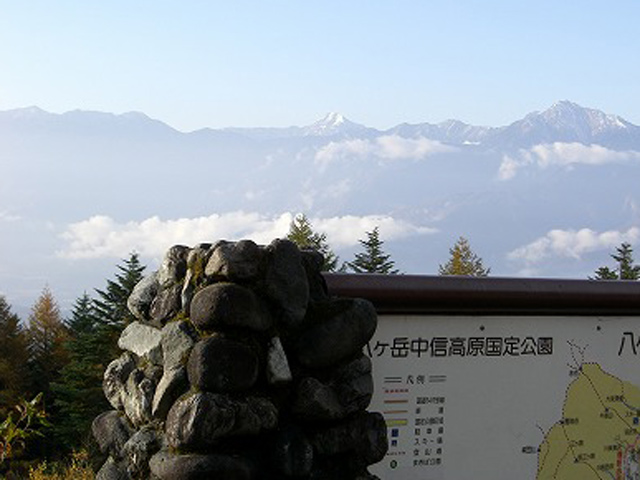 八ケ岳高原ラインから観音平に向かって北上する途中にある。展望台からは南アルプスの山並みと富士山を一望できる。