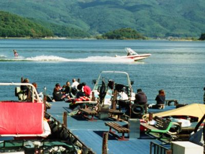 湖上にボートも少なく、水上スポーツを楽しむのに適した河口湖の西岸でスクールを開いている。ウエイクボードと水上スキーのスクールがあり、どちらも道具一式付きで、2本コース8000円、3本コース1万2000円。ほかに観光用のタクシーボード(湖1周1艇7000円、7人まで)もある。