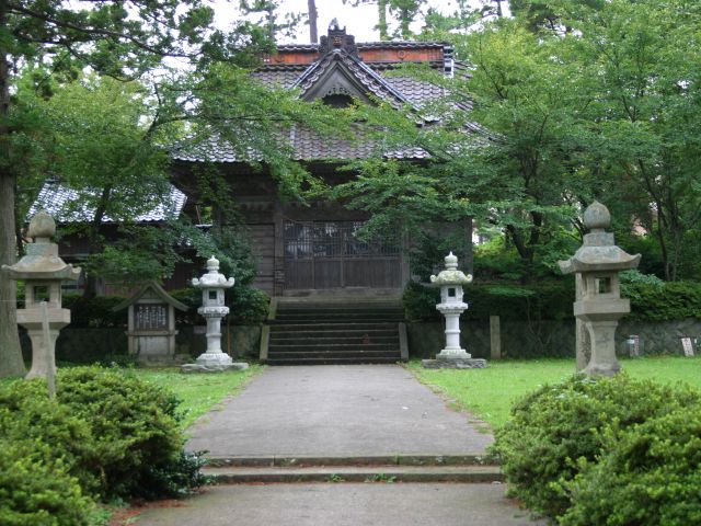 加茂湖東岸の小高い丘にあり、加茂湖の夕焼けが眺望できる。境内の能舞台では8月を除く5~10月に古式ゆかしい薪能[たきぎのう]が演じられる。舞台はふだんは戸が閉めてあるが、外観は見学自由。