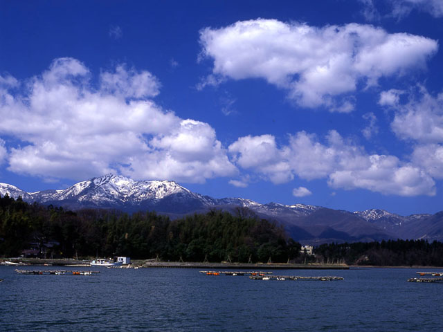 周囲約17km、面積4.9平方km。新潟県最大の湖「加茂湖」は古くから歌に詠まれるなど風光明媚で、湖面には佐渡の霊峰金北山[きんぽくさん]を映し、養殖カキのいかだが浮かぶ。4月中旬~下旬は湖東の桜並木が満開になる。秋から冬は湖畔のカキ小屋で土手焼きを味わえる。かつては淡水湖だったが、湖水の氾濫を防ぐために開削し、海水を含んだ汽水湖となった。
