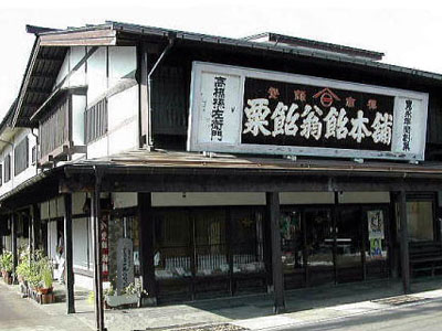 寛永元年(1624)より飴を製造している老舗。昔とほとんど変わらない手作りのあめと、水飴と寒天でつくる飴菓子を販売。もち米と麦芽のみで作る粟飴は1ビン918円~、水飴を寒天で固め乾燥させた翁飴は8個入り540円~、羊羹風にゴムにつめた瑠璃飴は10個入り1167円~、飴を熊笹に練り上げてつけた笹飴は16枚648円~。建物は国の登録有形文化財に指定されている。
