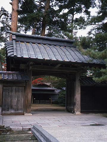 清水園と川を隔てた道筋に立つ、江戸末期に建てられた茅葺寄棟造の八戸の棟割長屋。土間、6畳2間、台所だけの質素なもので、当時の下級武士のくらしがうかがえる。国重要文化財。所要10分。