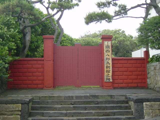 保元元年(1156)、保元の乱に敗れ、大島に流刑された源為朝の住居跡といわれるところ。大島を本拠に近隣の島々まで勢力を広げた。島民からは赤門で親しまれ、朱塗りの門や戦に備えた物見台、為朝神社、海に通じる抜け穴などが今も残されている。