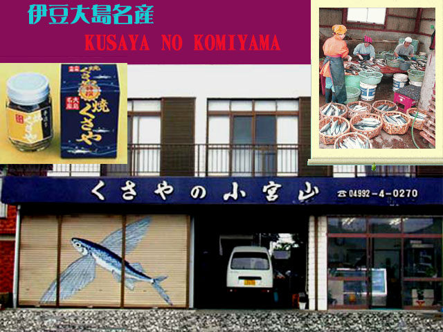 創業して100年にもなるという、大島名物・くさやの老舗。くさや液は、江戸時代から継ぎ足され使われてきた年代物だ。島の代表的な味はアオムロアジ1枚350円前後で通年作られる。春から夏にかけては、トビウオ400~600円前後がおすすめとか。醤油と酒で味付けした瓶詰めの焼くさや1130円は、匂いも気にならず食べやすい。