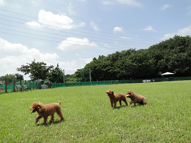 犬種別に分かれたドッグランが好評。ベンチやテーブルも用意され、自然エリアでは飲食も可。足洗い場も備えている。70台収容可能な無料駐車場をはじめ、木陰で快適に過ごせる自然エリアもある。約2500平方mの大型エリアや、中型・小型エリアもそれぞれ約1000平方mの広さがあり、開放感ある整備された草原になっている。
