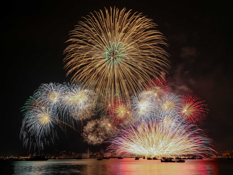 潮の香漂う瀬戸内海を舞台に、夢をコンセプトとした約6500発の花火が夜空を彩る。