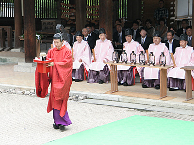 鹽土老翁神が人々に塩作りを教えたことにちなみ、古式の製塩法によって塩を作る神事。でき上がった塩は神前にお供えされるほか、当日の参拝者に配られる。 画像提供:鹽竈神社