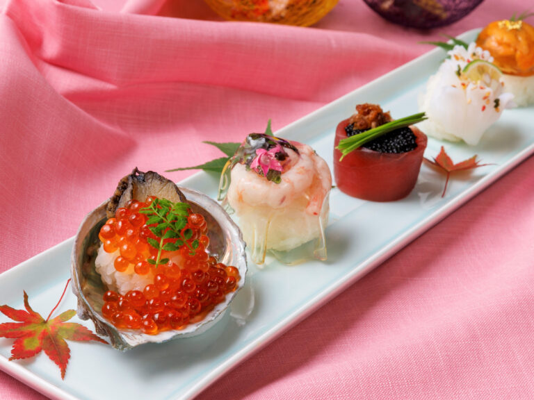 本格的な江戸前寿司からお酒に合うネタまで、お手頃価格で魚料理が味わえる話題の寿司飲み屋。たしかな味もさることながら、独創性とインパクトのあるメニューの数々はSNS映えも必至。カニの甲羅に入ったズワイガニのほぐし身・アカエビのたたき・イクラなどを、海苔巻きにかけて食べる名物の「エビカニ合戦」は特に人気。