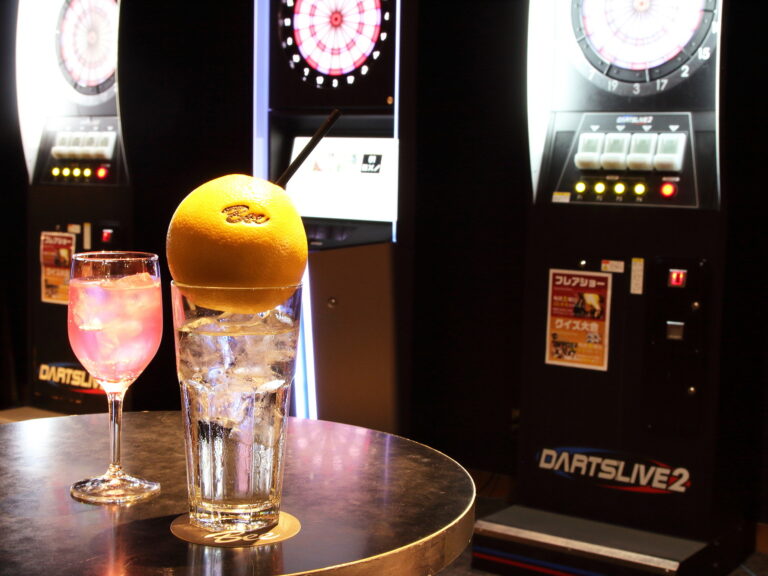 皮を剥かずに果肉のみを絞ることができる、業務用ジューサー「カジュッタ」を使用したサワーが話題のダイニング・ダーツバー。絞った果物をそのまま器としてサワーのグラスの上にのせたスタイルが、SNS映えすると評判。また、土・日曜と祝日には「ガッツリ飯」系のランチも提供。