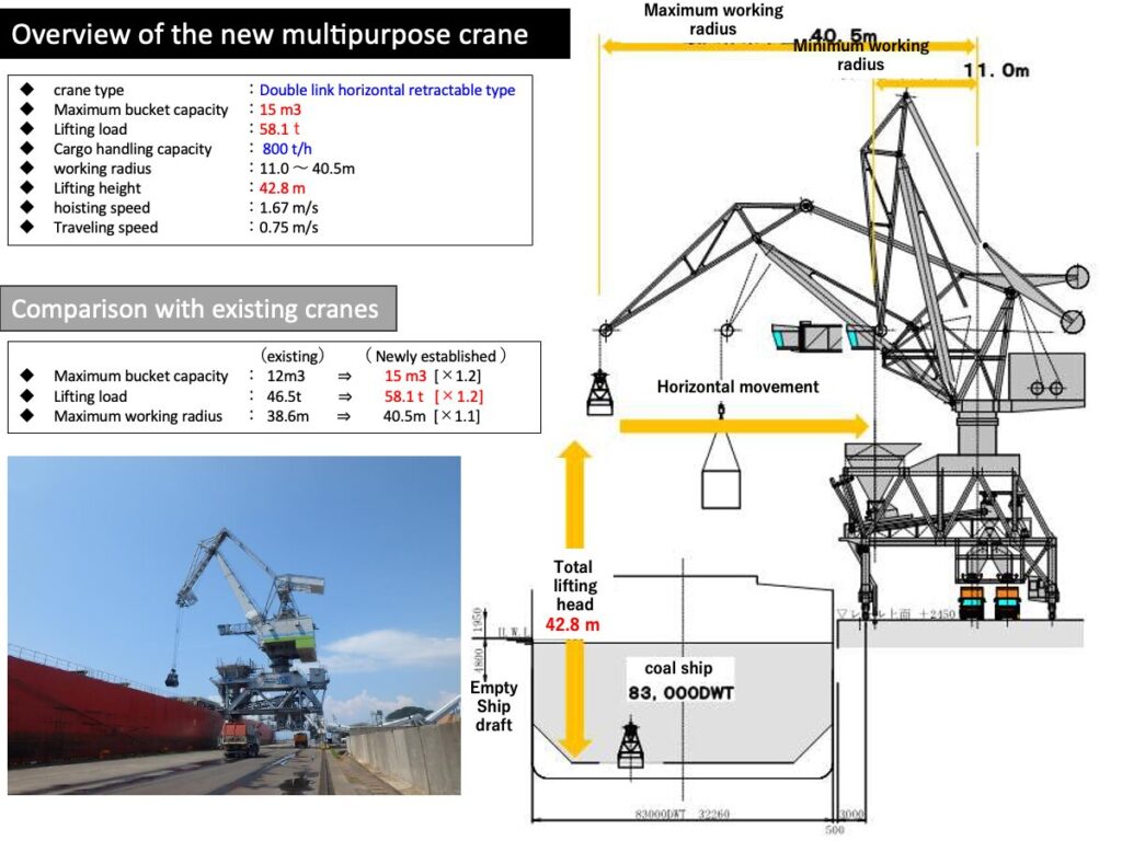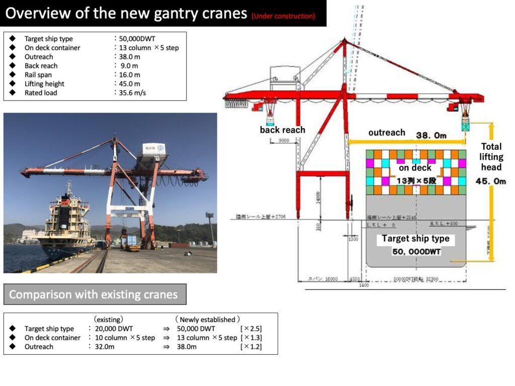 在莳山北地区,主要处理渡轮货物和散货,并设有两台多功能起重机。其中一台已于令和7年(2025年)11月安装,目前正在进行运行确认,计划于令和8年(2026年)4月投入使用。