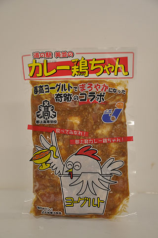 咖喱鸡和当地高中酸奶的合作商品。作为鸡来说很少见的咖喱味。套餐950日元