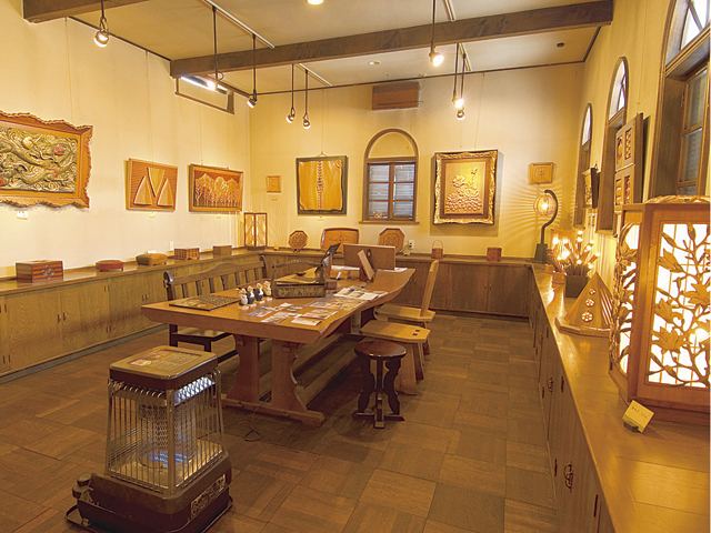 農民美術家で木彫作家の宮島勝氏のギャラリー。桜やホウの木、トチの木などを素材にした宮島氏の作品は、家具や壁掛など、いずれも木の温もりが生きている。ほかに白馬村在住の作家の作品も展示。入場客にはお茶を出してくれるなど、ひと休みスポットとしてもぜひチェックしておきたい。
